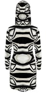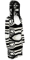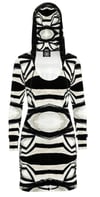 Designed with functionality in mind, this hooded sweatshirt dress comes equipped with a practical kangaroo front pocket and a chic drawstring adorned with stylish silver toggles. Choose between black or white detailing to suit your taste.