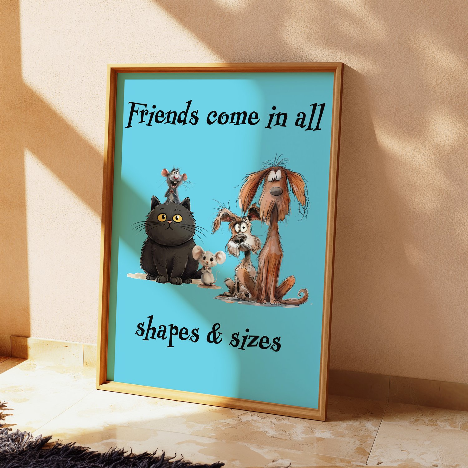 Fun wall art and poster. Friendship is one of the most powerful bonds we have. Having good friends is truly wonderful, and true friends come in all shapes and sizes.