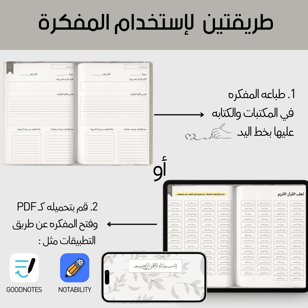 مفكرة رحلتي مع القرآن الكريم || باللغة العربية