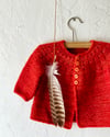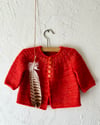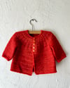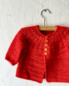 Une fois que vous avez rabattu la dernière maille de la deuxième manche, votre projet est terminé. Pas de bandes de boutonnage ni d’encolure à relever, car elles sont créées tout long du vêtement, avec de jolies bordures en icord.