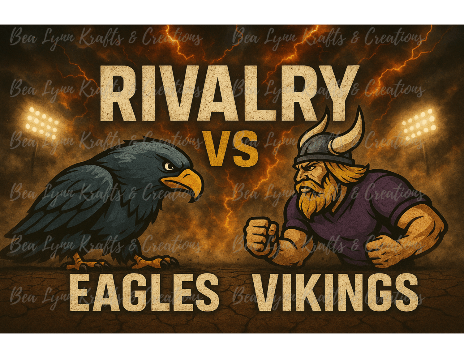 Eagles vs Vikings Rivalry PNG – Fierce Football Mascot Clash with Transparent Background, Perfect for Shirts, Tumblers, and Sports Merch!