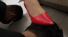 In her deadly red stilettos