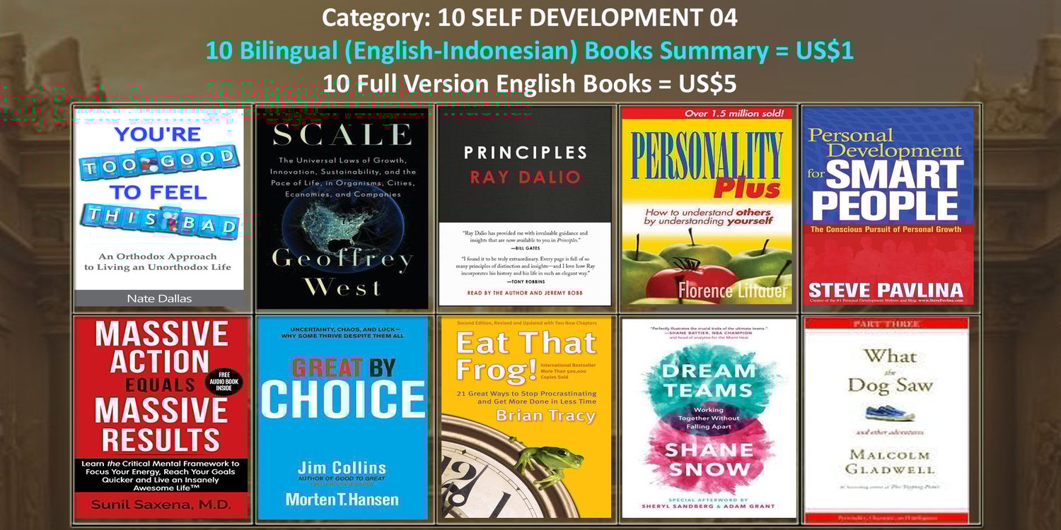 · Untuk 10 buku summary dalam 2 bahasa (English-Indonesian), hanya perlu 1 dollar saja, atau Rp.16.000,-