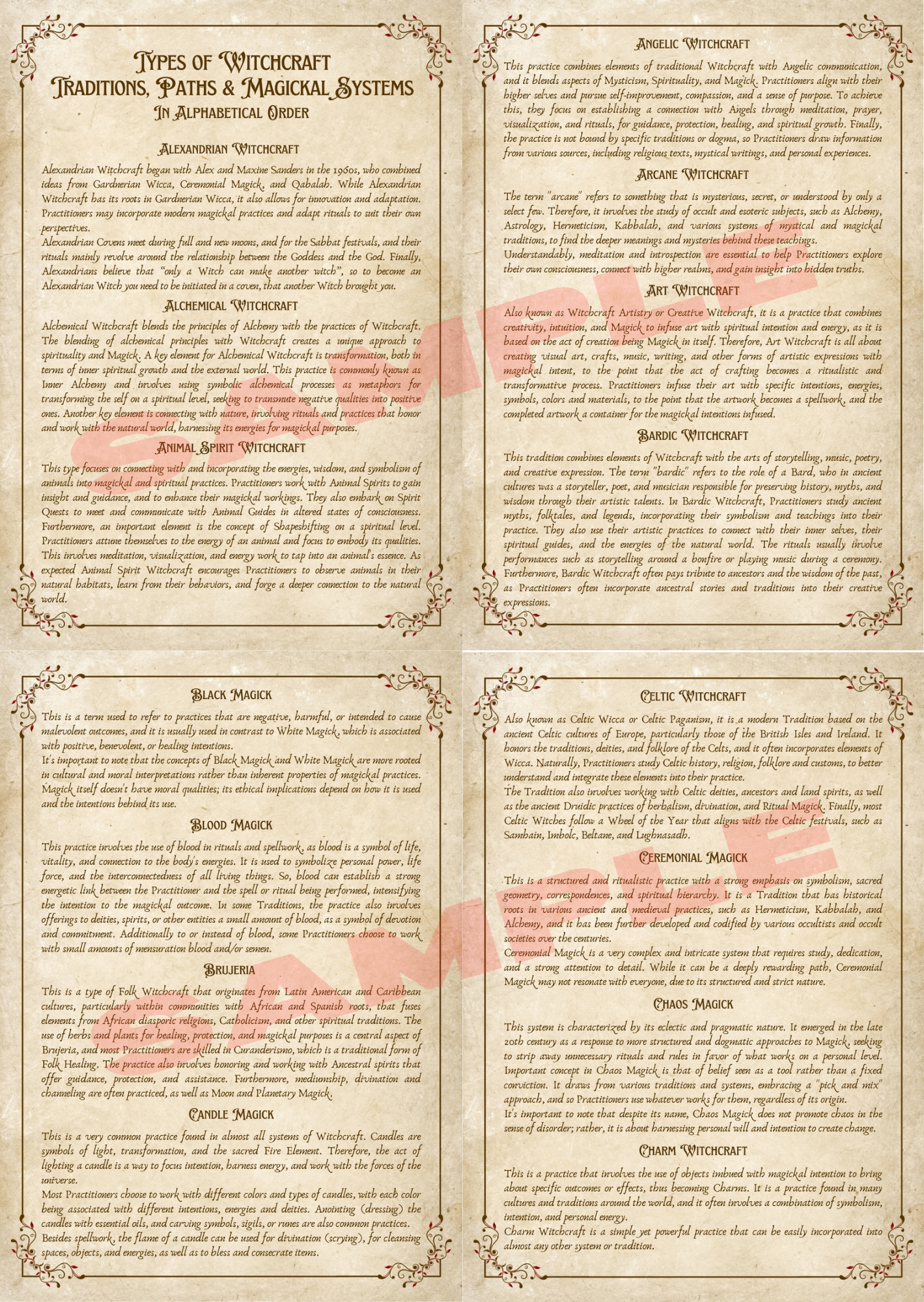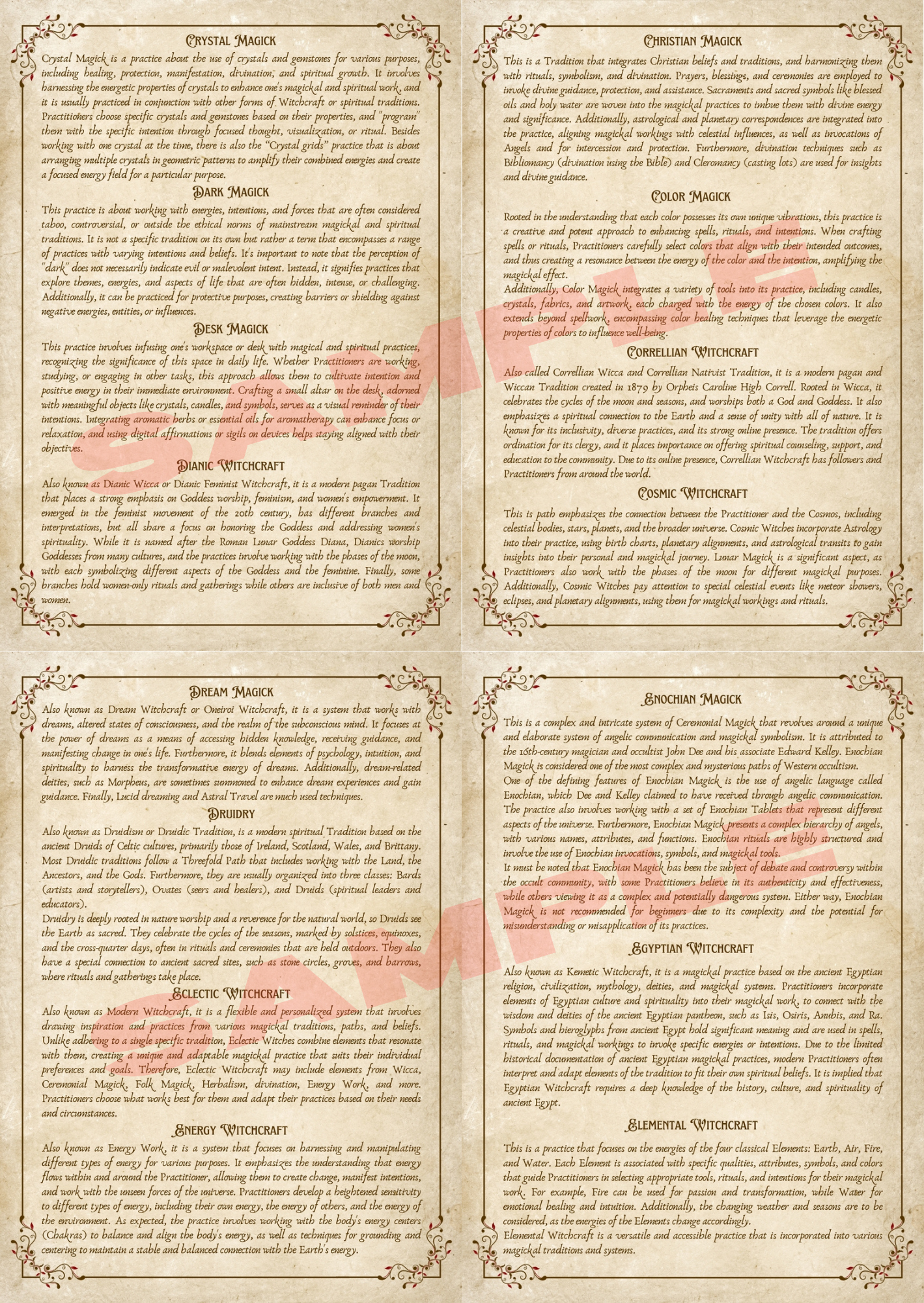 This comprehensive guide provides an overview of the diverse Magickal Crafts practiced today, offering concise yet comprehensive insights into their origins, practices, and core focuses.