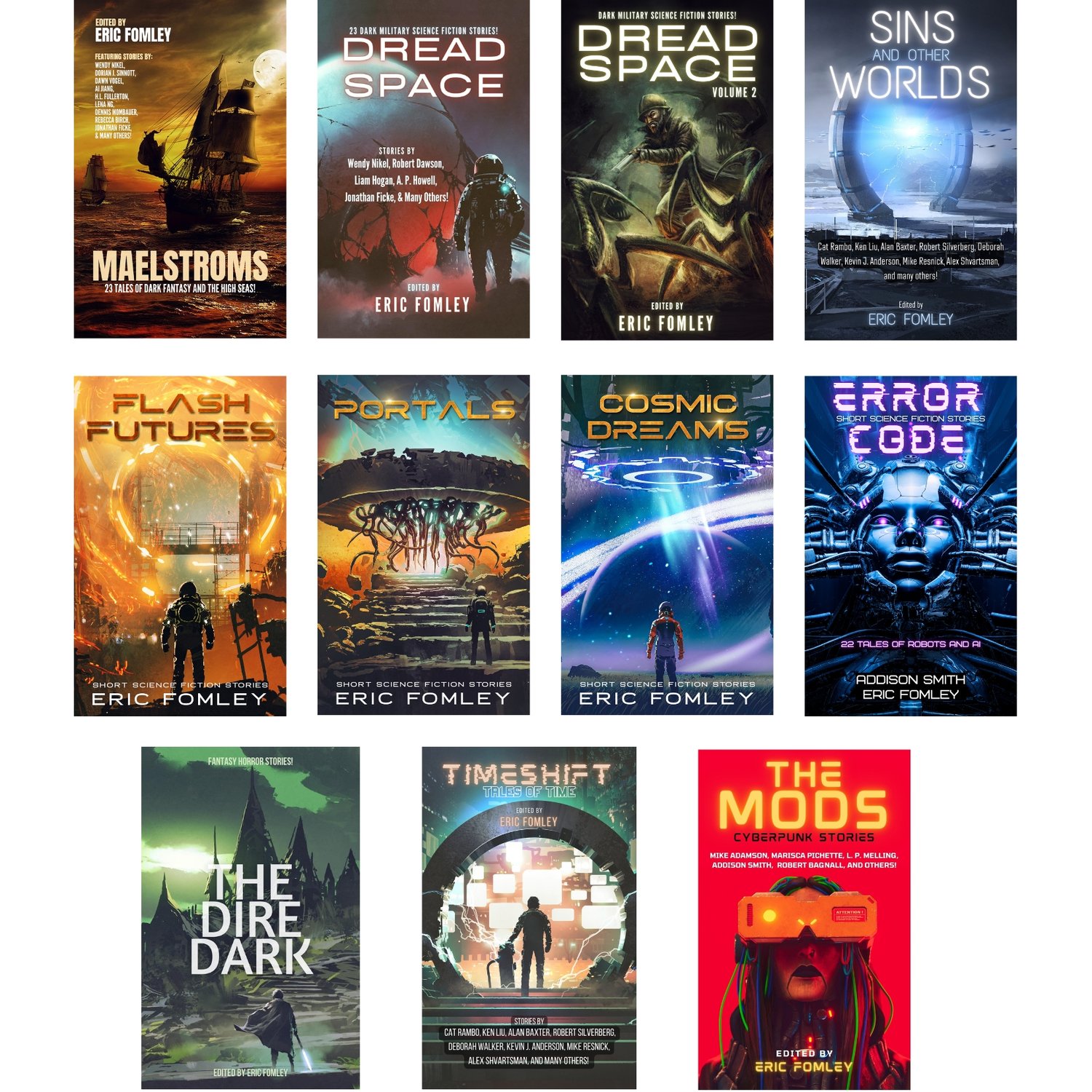 Maelstroms, Dread Space, Dread Space 2, Sins and Other Worlds, Flash Futures, Portals, Cosmic Dreams, Error Code, The Dire Dark, Timeshift: Tales of Time, and The Mods.