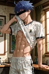 サッカーユニフォームをモチーフに、スポーツ男性の日常やキャラクターの魅力を存分に表現しました。