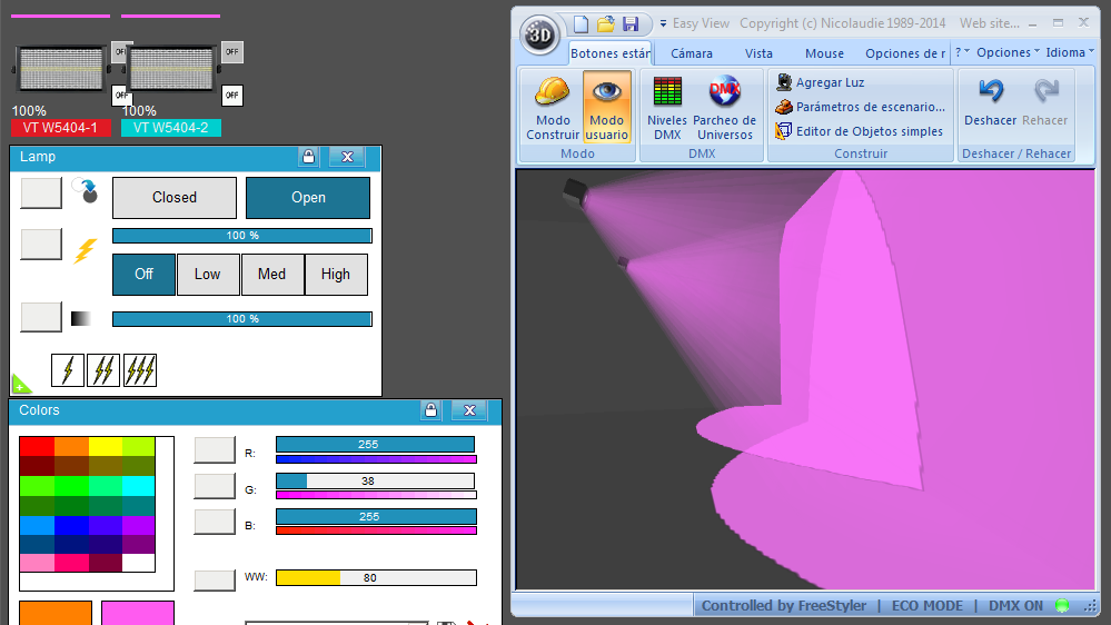 Esta Librería SSL2 está optimizada para trabajar con Magic 3d Easy View. Es decir para ver una representación 3D de las secuencias que estemos realizando con Freestyler, QLC+ o cualquier otro soft que se conecte con Magic 3d.