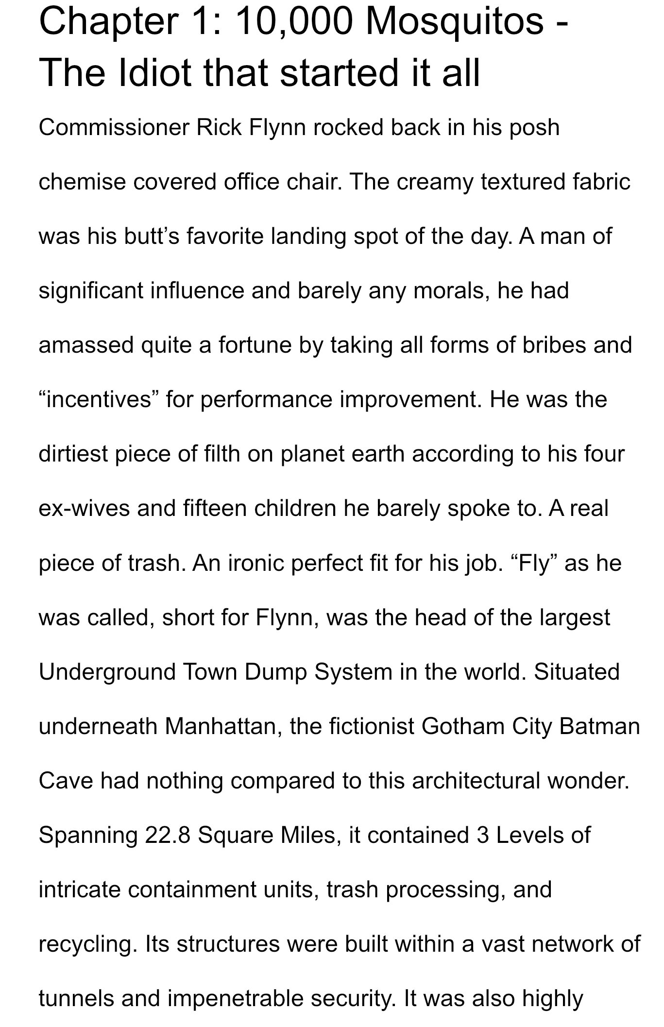 This is Book #1 of an Action Packed Horror Story Series filled with unique characters and exciting Science Fiction! Join the Flies against Dragons fight in the Underground Trash Dump / Wealthy Prisoner Dungeons under New York City!