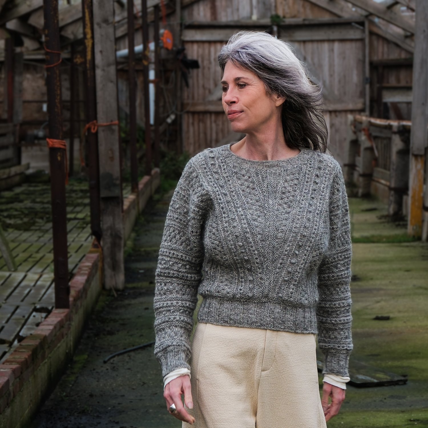 Thoughtful construction, tactile texture, and quiet elegance come together in Alula: a sweater that feels as good to make as it does to wear.
