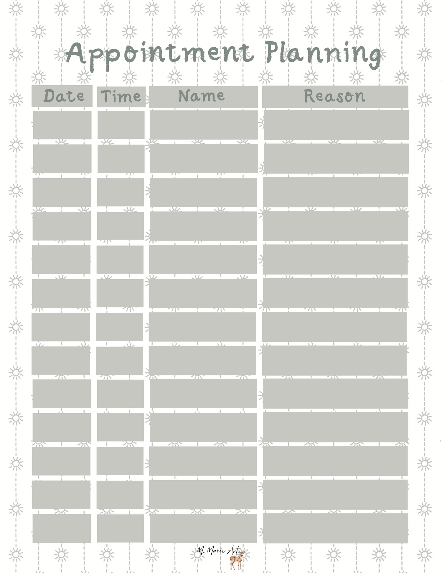 Appointment Planning Sheet Sage
