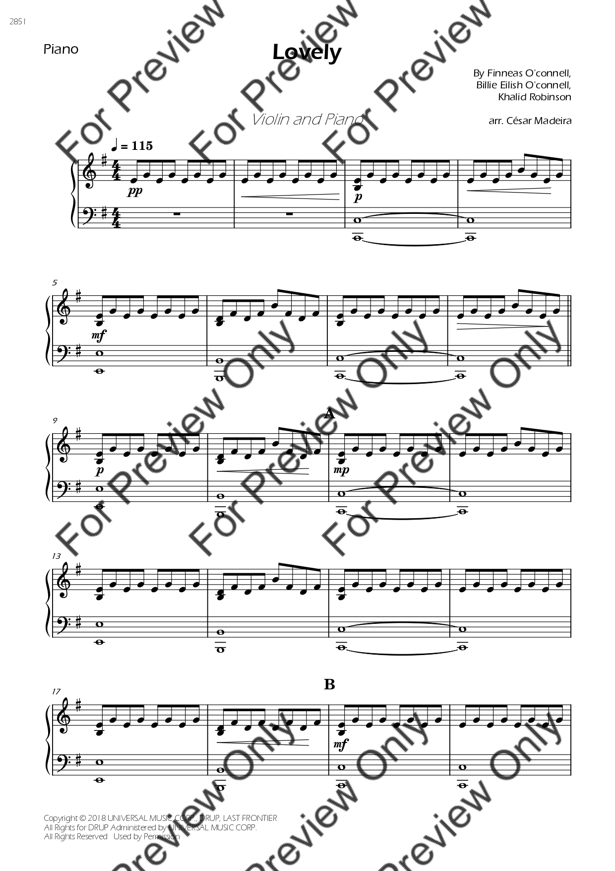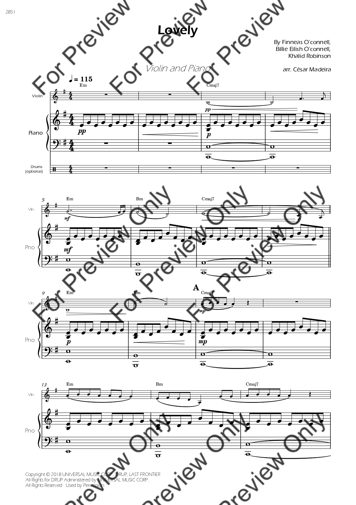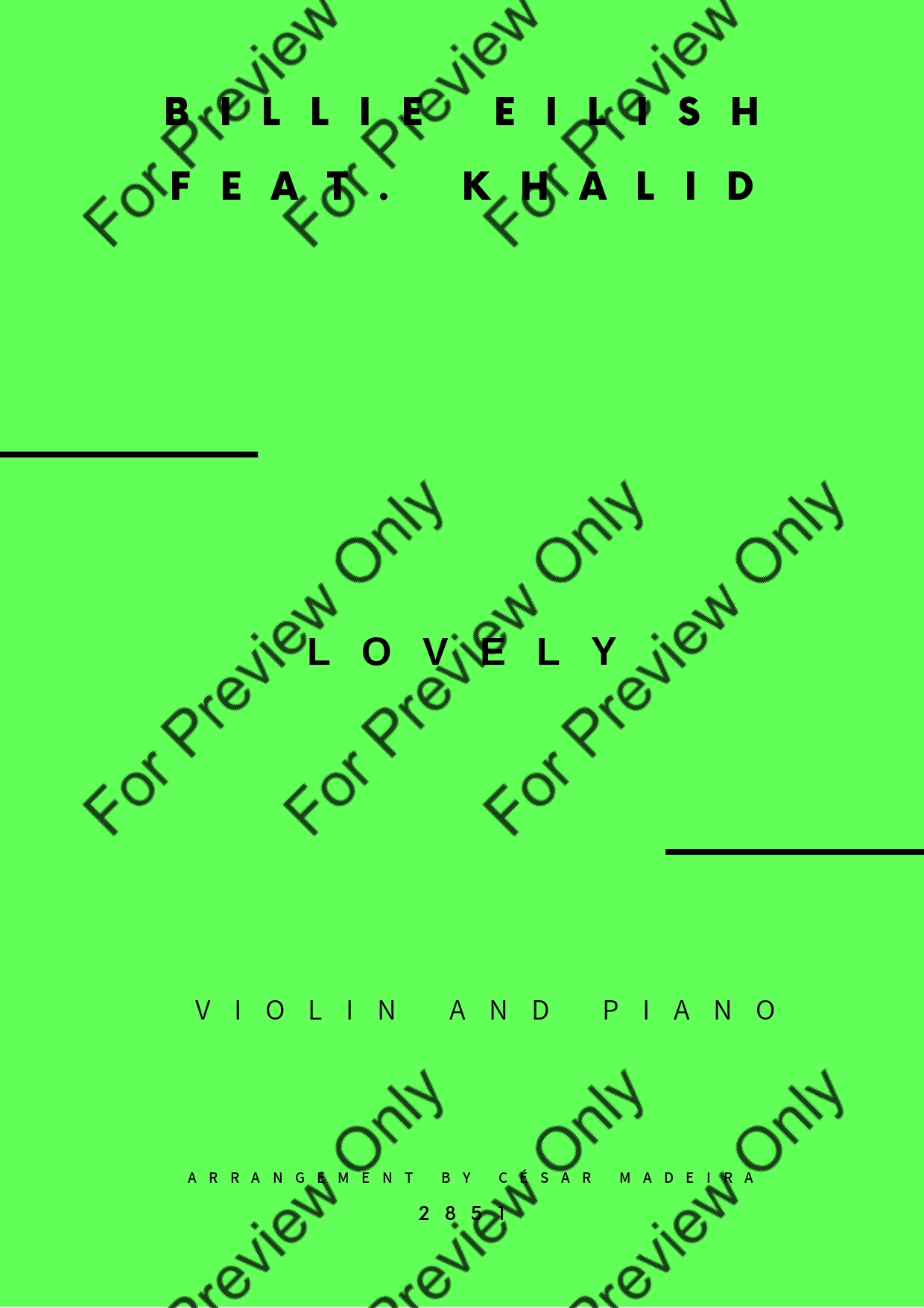 Lovely by Billie Eilish. Arrangement for Violin and Piano. With Full Score and Individual Parts. Have fun!