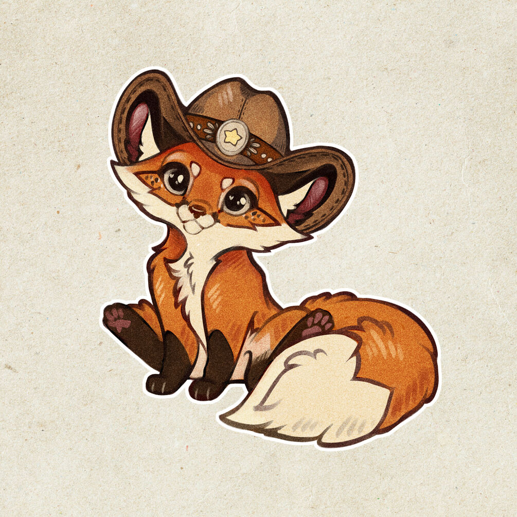- 18x18 inch PSD file (Lineart: body, face and pupils layers; color layers for separate parts of the fox & its hat)