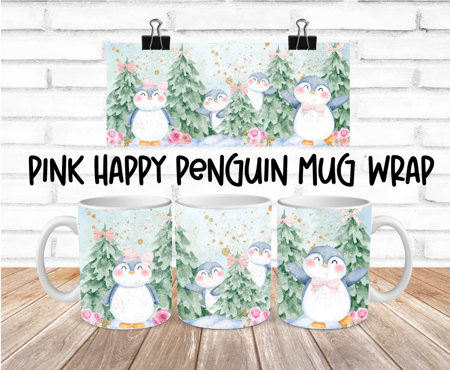 Pink Happy Penguin Mug Wrap