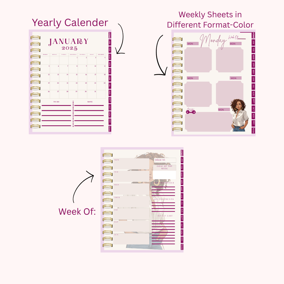 - Yearly, Monthly & Weekly Views Plan big-picture goals, track monthly progress, and break it all down week by week.