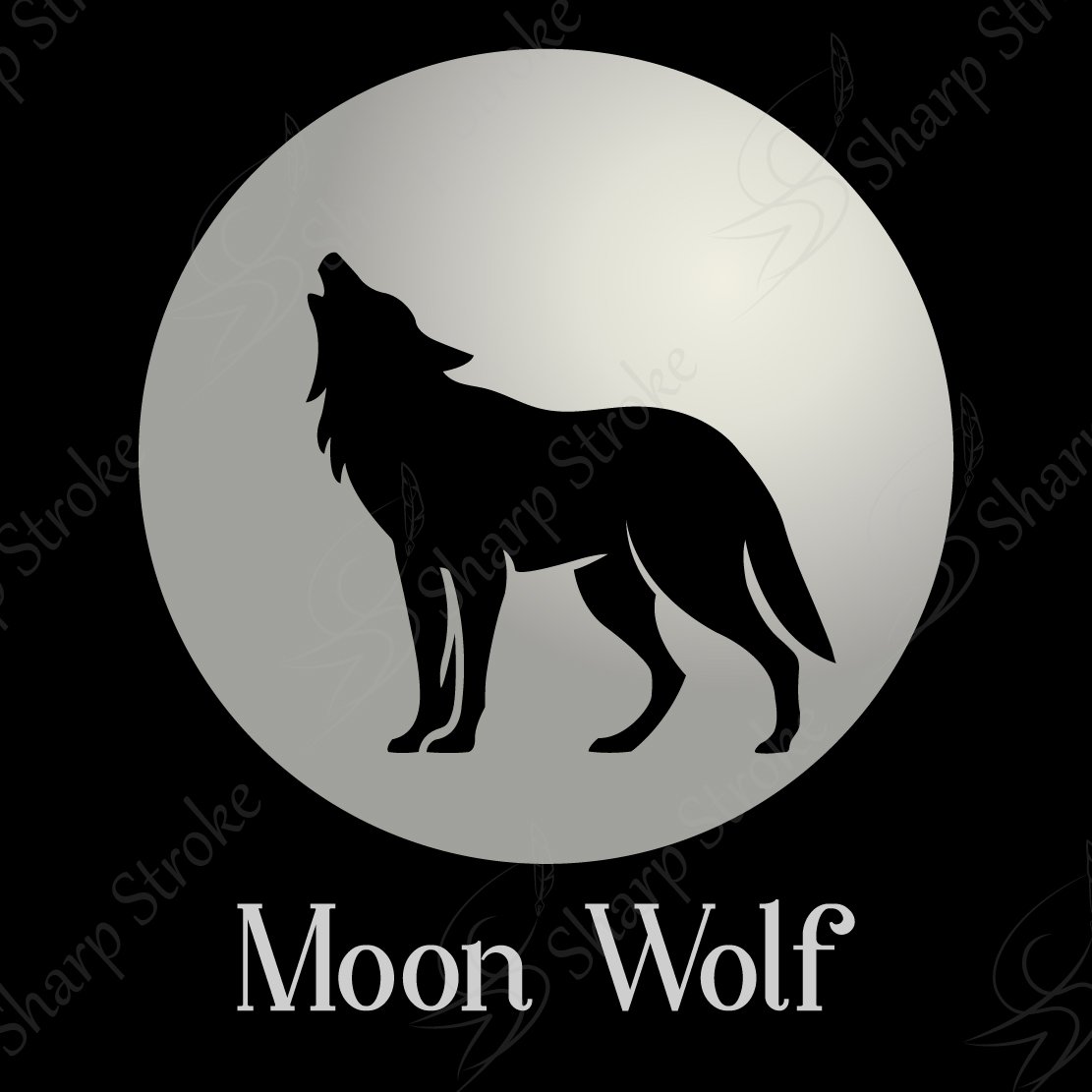 A scalable vector illustration of a wolf’s silhouette howling against a gradient-colored moon, capturing a dramatic and nocturnal feel. Perfect for designs featuring nature and the night sky.