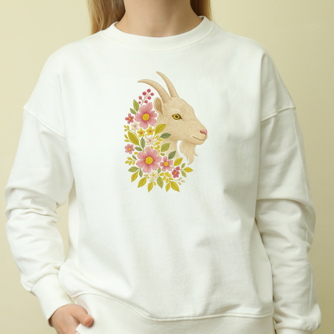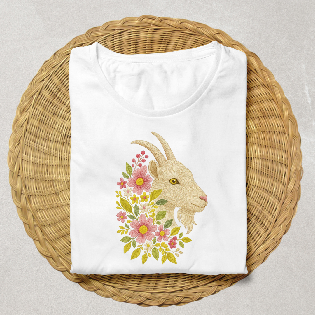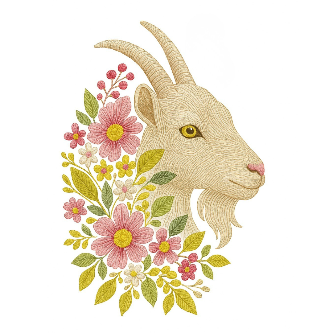 Bring a touch of countryside charm to your embroidery projects with this Floral Goat Embroidery Design! 🐐🌸