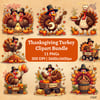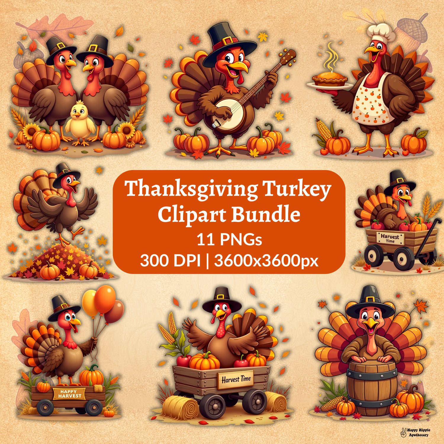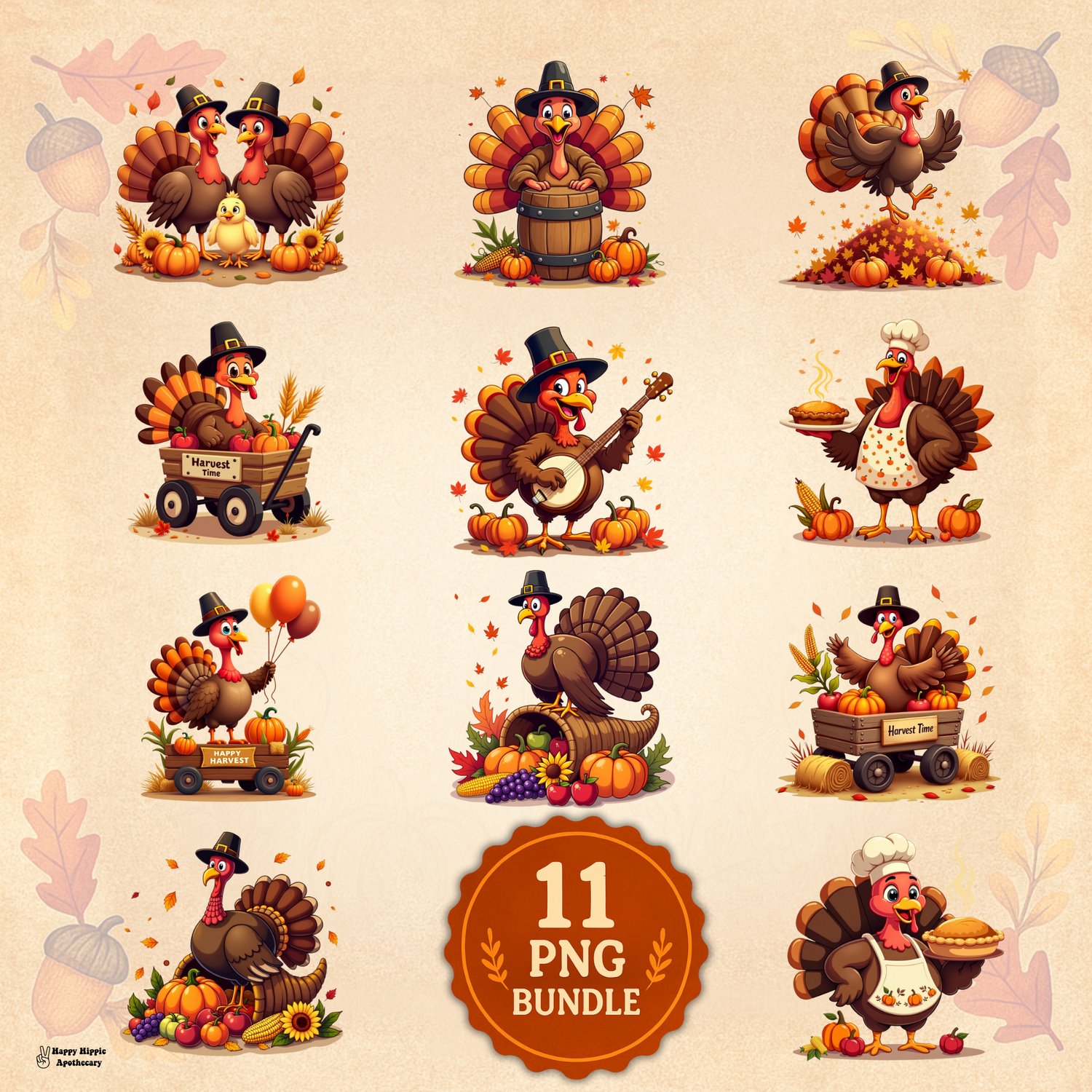 Thanksgiving Turkey Clipart Bundle | 11 Fall PNGs for Sublimation, Crafts & Printables