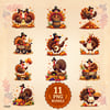 Bring festive charm to your seasonal projects with this Thanksgiving Turkey Clipart Bundle! This set includes 11 unique PNG designs featuring cheerful cartoon turkeys in fall harvest scenes. Perfect for creating Thanksgiving cards, seasonal home décor, sublimation gifts, printable crafts, and more. Each design is high resolution and ready to use across your favorite projects.