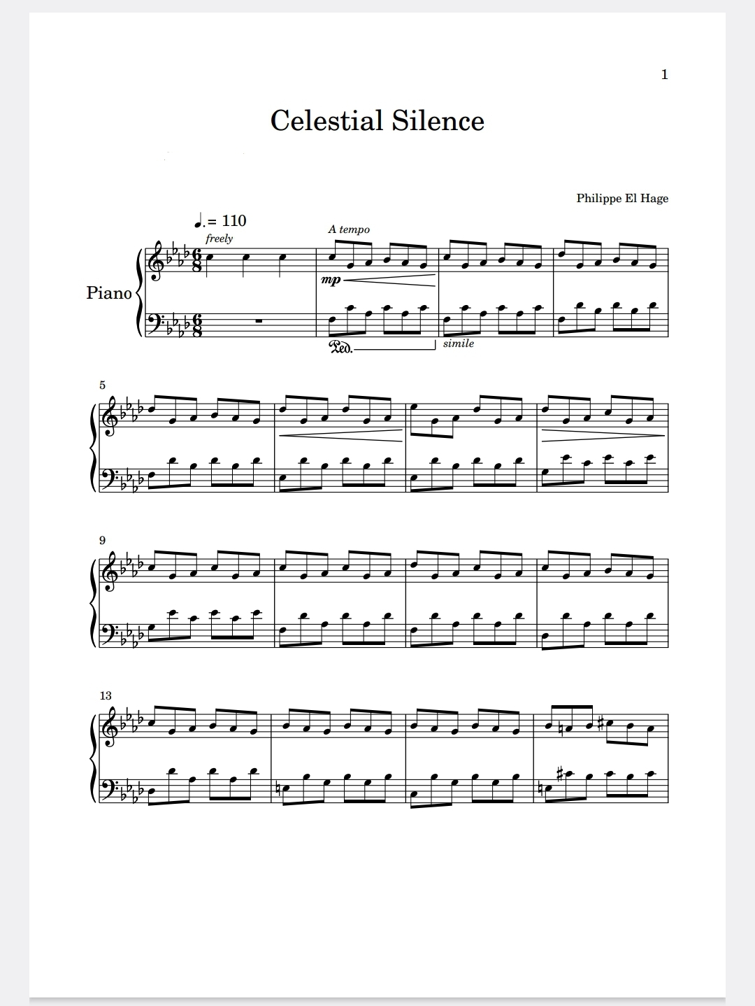 This is the Piano Score of ''Celestial Silence'' by pianist & composer Philippe El Hage.