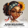 Fun 3D Pixar Style African American Patriotic Girl with Sticker Images - Inspirational Quotes - Set of 10 Transparent PNG Images