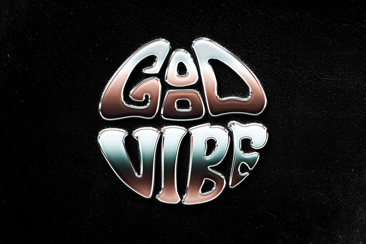 The typography has a sleek, glossy appearance, almost like metallic lettering with smooth, reflective surfaces that catch the light, giving it a polished and vibrant look.