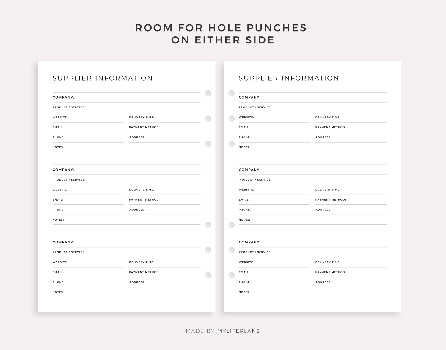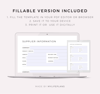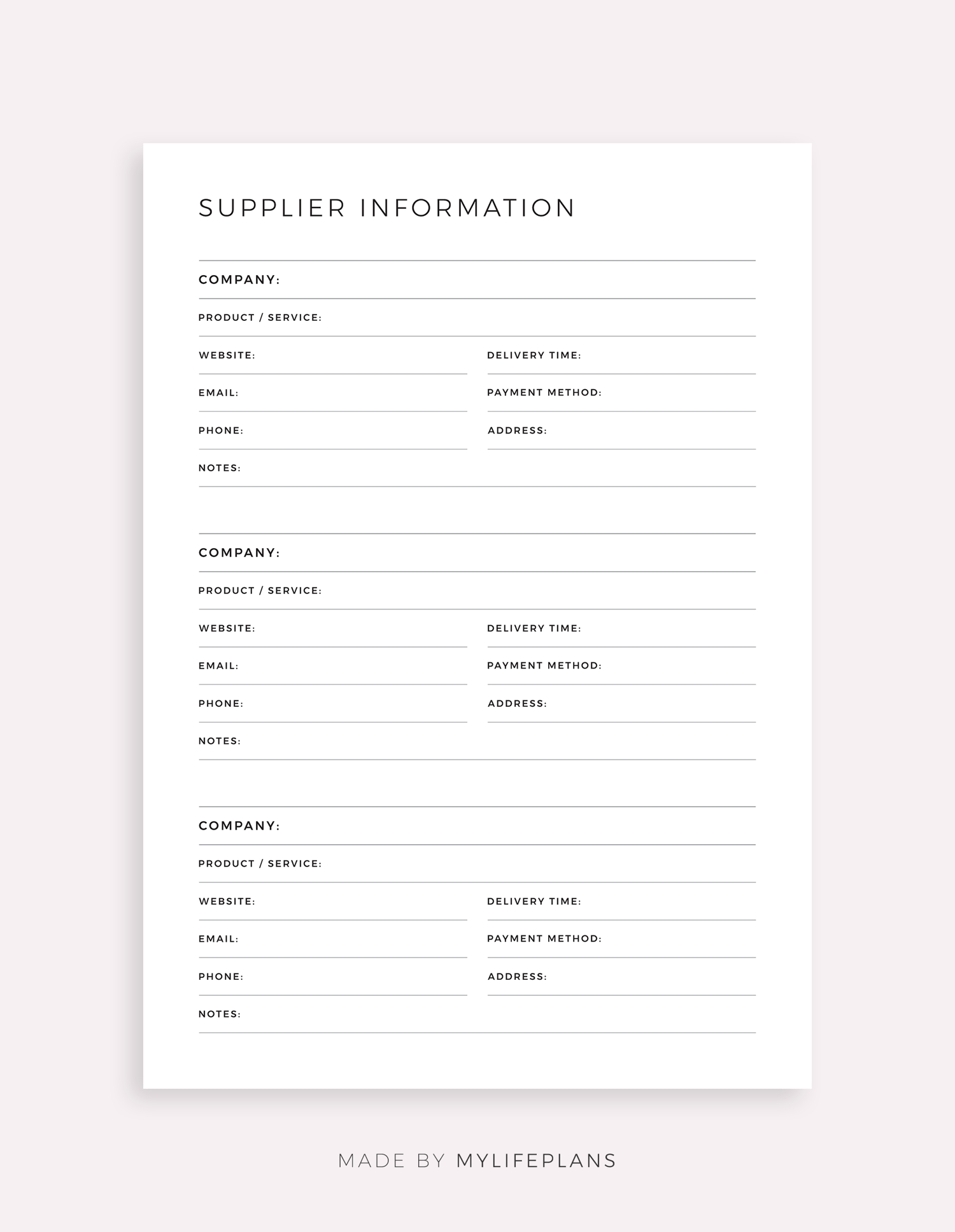 Detailed Supplier Information Printable, Supplier Profile Template, Supplies Vendor Contacts, Business Owner Organizer