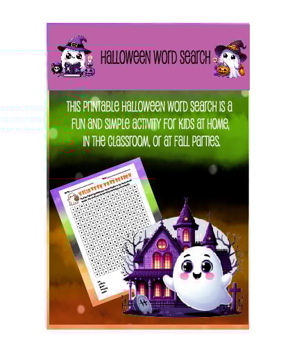 - 1 Word Search Puzzle (Halloween-themed words)