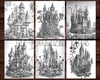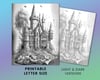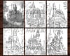 21 Castles Elegant Coloring Book, Adults Instant Download -Grayscale Coloring Page - Printable PDF, cottages, medieval castles, beautiful