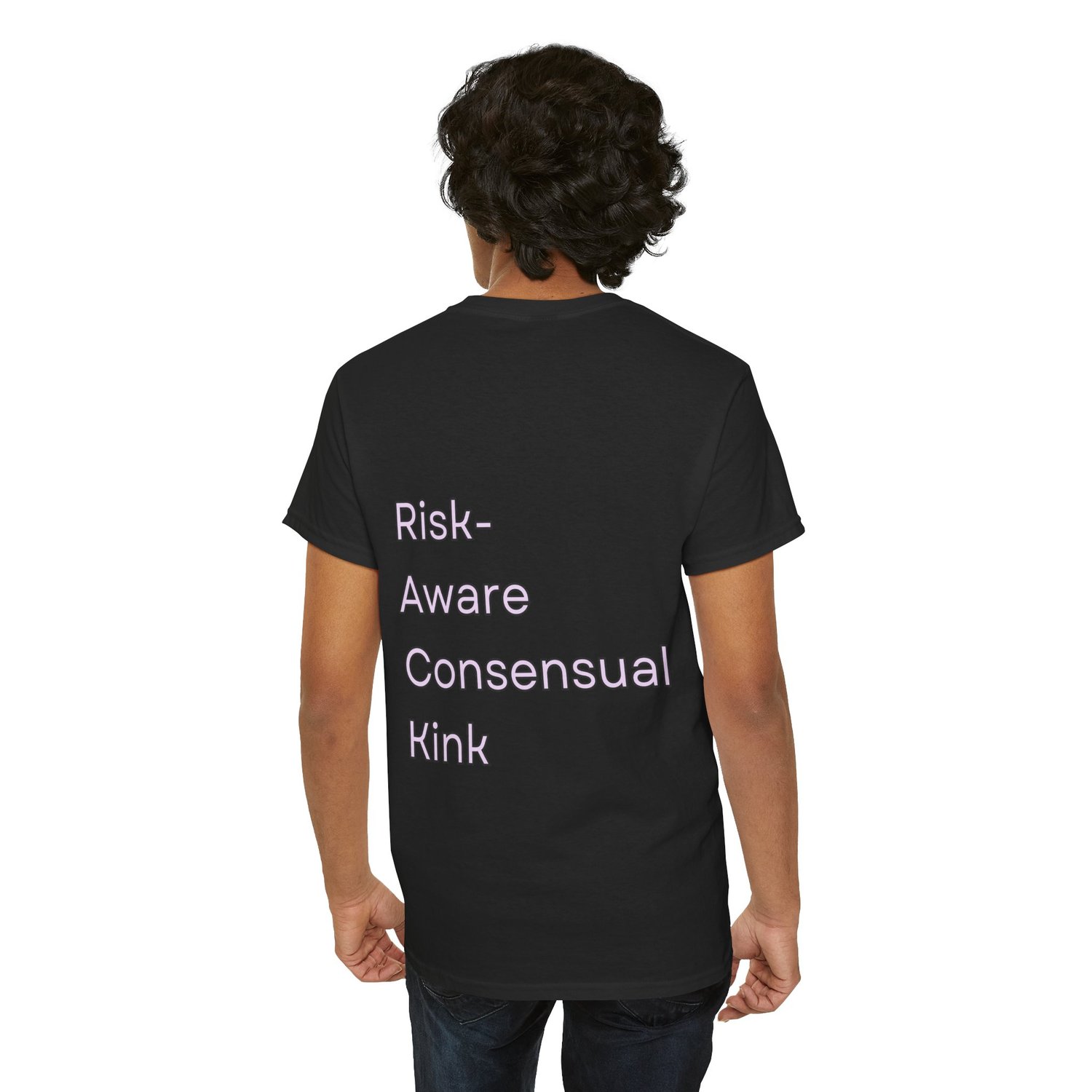 Nice Rack winking emoji T-Shirt | Risk-Aware Consensual Kink back print (Physical Shipped Item)
