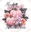 Floral pumpkin Happy Halloween design-fixed text
