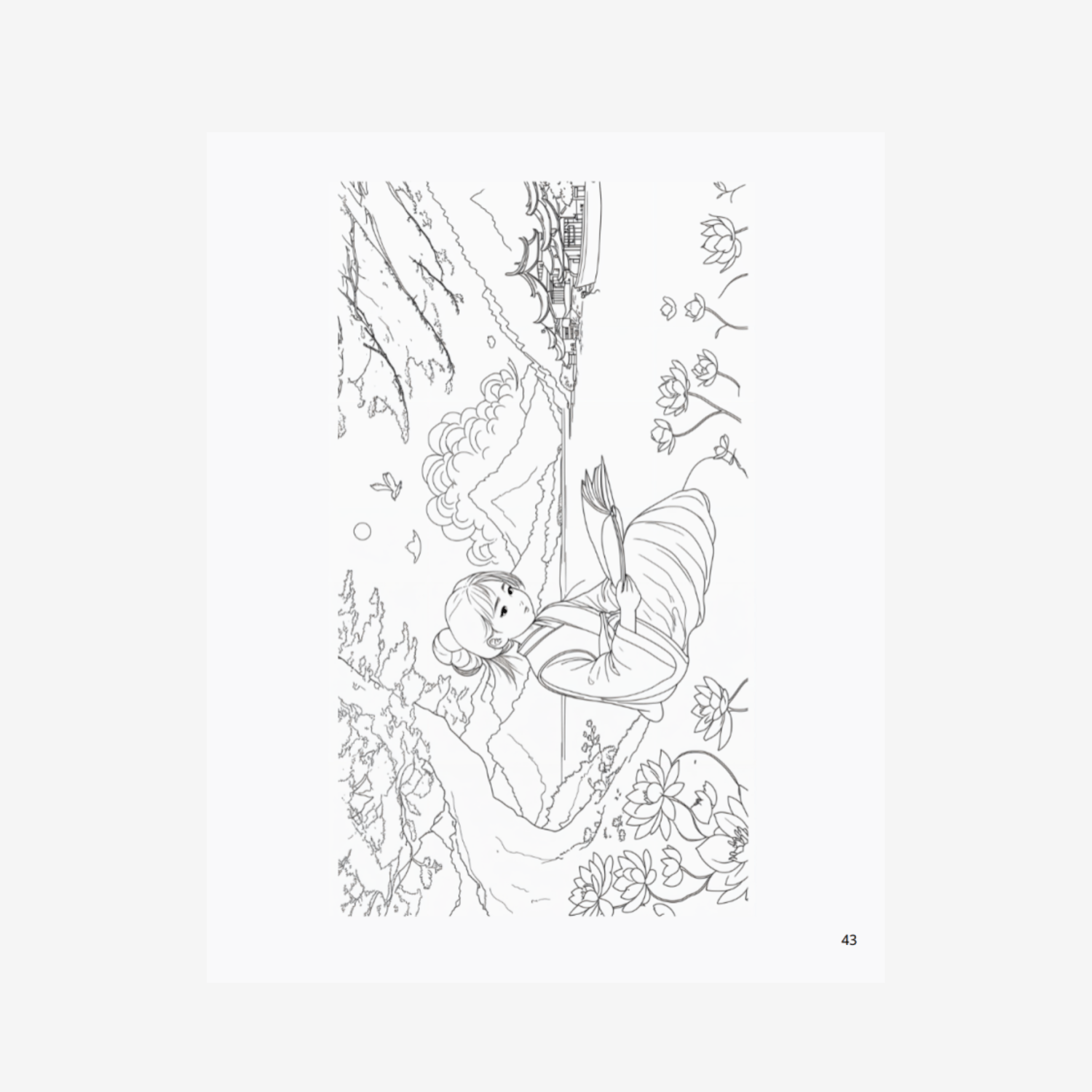 Усередині 43 сторінки з традиційними сюжетами: квітуча сакура, гейші, храми, дракони, самураї.