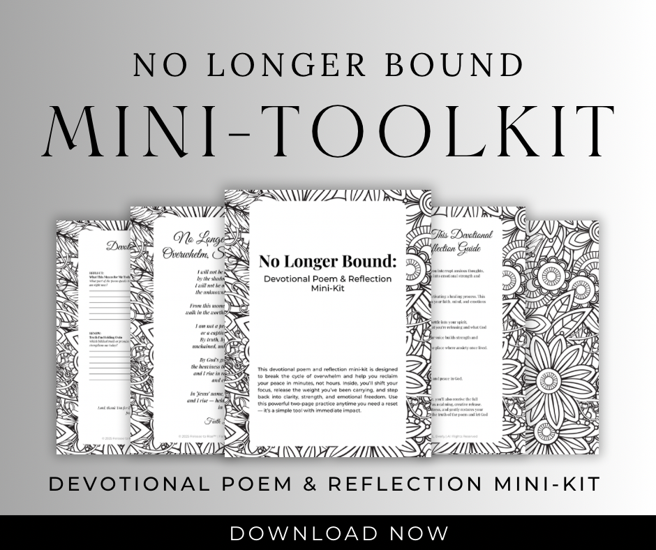 No Longer Bound: Devotional Poem & Reflection Mini-Kit is a simple but powerful tool created to help you interrupt anxious thoughts, reset your mindset, and reconnect with God’s peace — in just a few minutes.