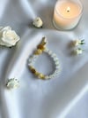 Pure and radiant, this bracelet shines with the light of faith. Faceted clear crystal rondelle beads are strung with gold seed beads and paired with a sparkling gold cross — stamped "Made with Love." A saint medal adds a sacred, personal touch.