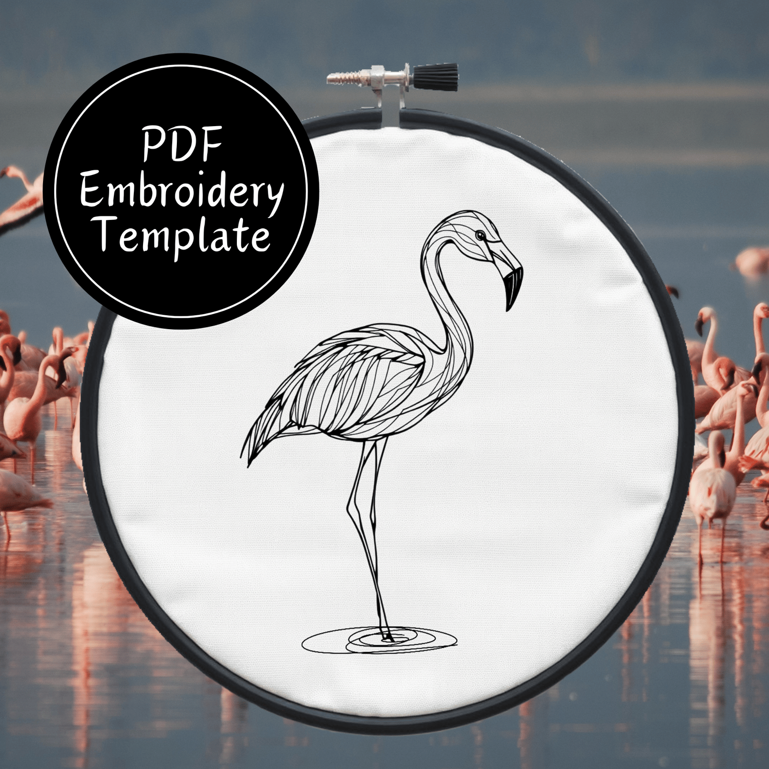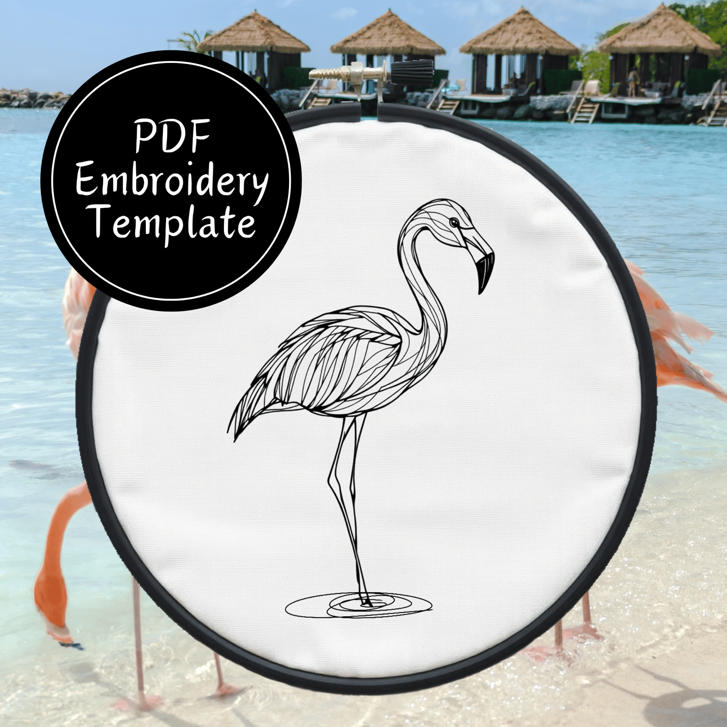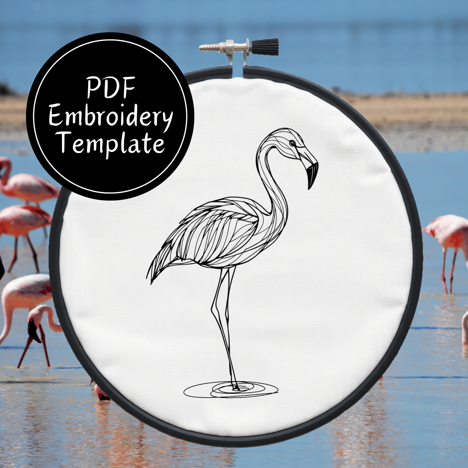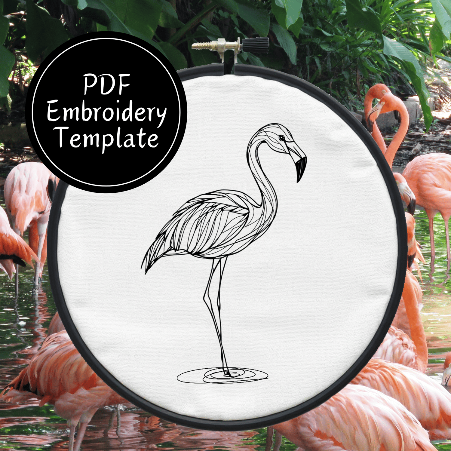 Pink Flamingo Hand Embroidery Pattern DIY Embroidery