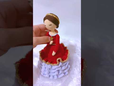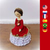 She is 21cm or 8.2” tall and made with “FINGERING” weight yarn suitable for amigurumi and a size 2mm crochet hook.