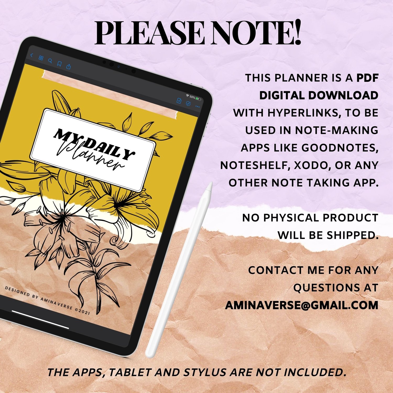 The tablet, stylus and Apps required to use this planner are NOT included in your purchase.