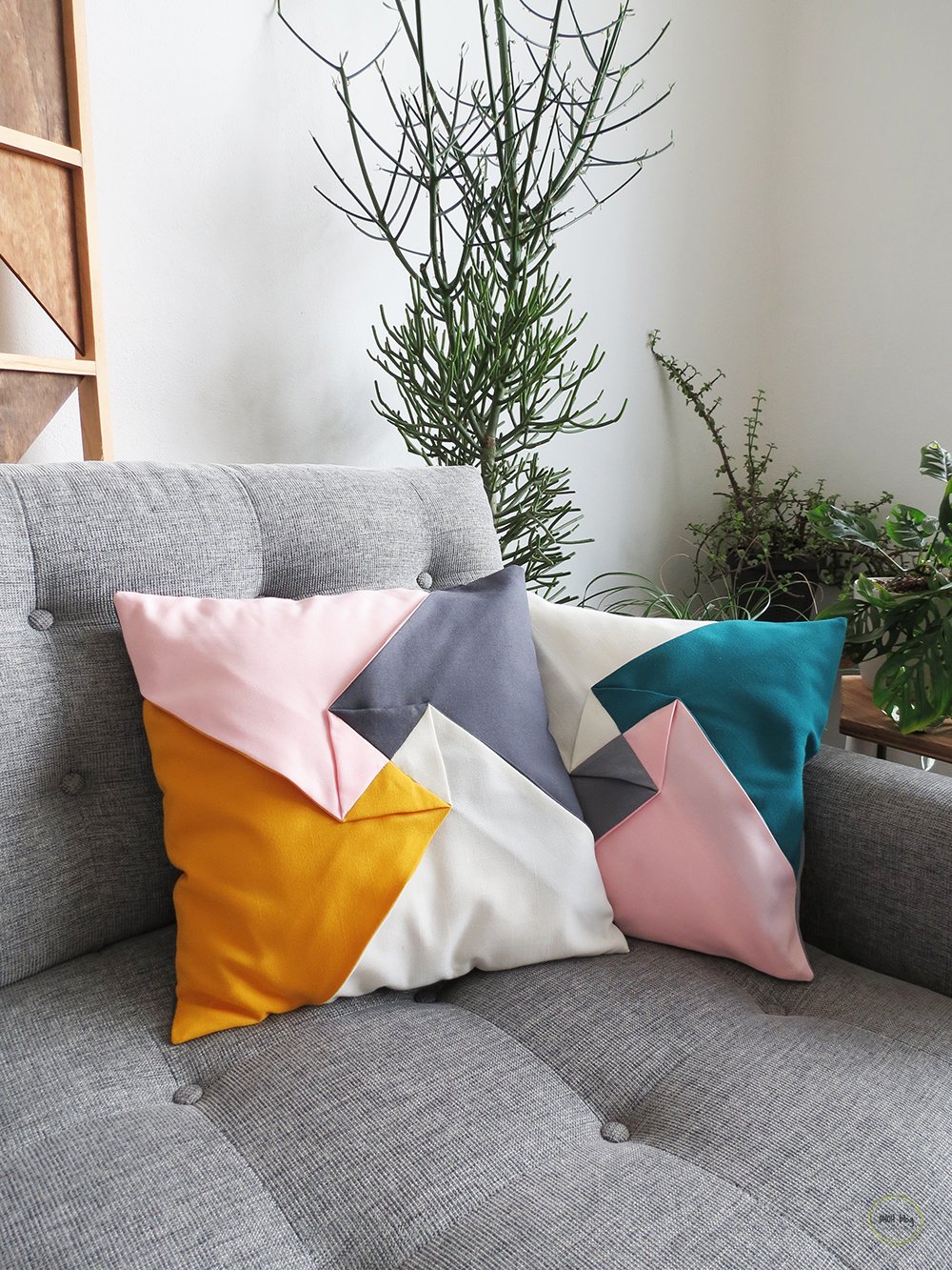Add a touch of color to your home by sewing a geometric cushion cover. The geometric design is inspired by Origami. The digital file includes the pattern pieces for cutting out after printing and a photo tutorial to show you how to sew this pattern together.