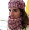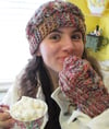 A pretty plaited cable surrounds this hat. It looks lovely in both solid and variegated yarns. Two size options are given. If you want a hat that will come down to cover your ears entirely, choose the larger cast on. For a smaller brim, covering the top half of your ears, choose the smaller cast on.