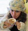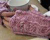 These little mitts sport a pretty ribbon cable down the center. The soft cable is easy on the hands, and you’ll find the mitts come together in just a short time. There is no separate thumb, but the opening is placed to create a soft gusset and cover the bottom of the thumb. The fabric is flexible, fitting most hand sizes. The pattern tells you how to adjust both the arm and hand lengths.