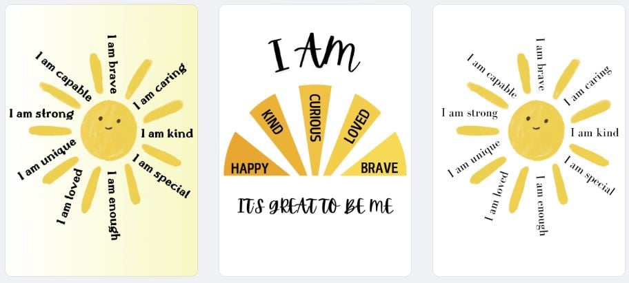 3 sunshine affirmation posters for home, school, bedroom, office in 2 different styles.