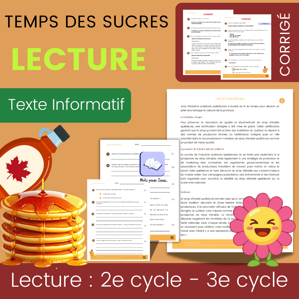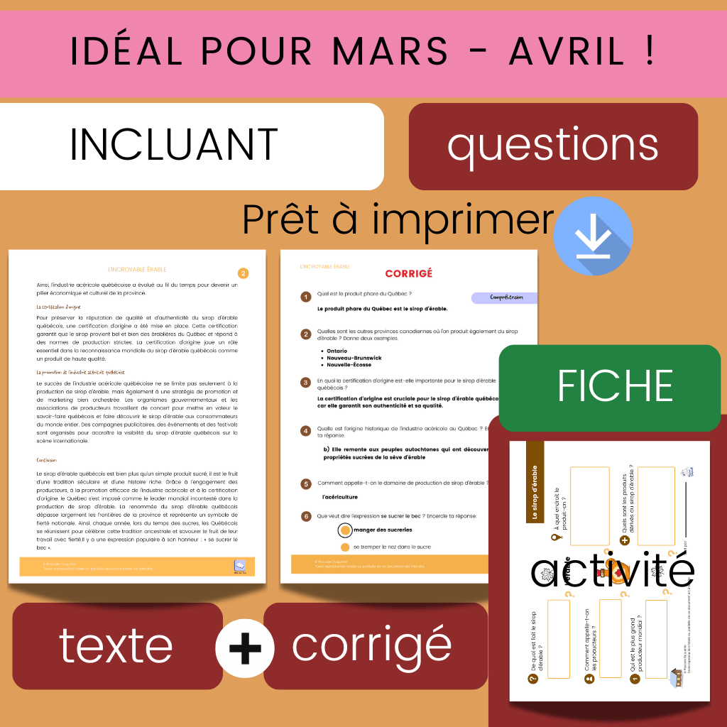 Magie du Printemps — Lecture 2e 3e cycle : Incroyable Érable (525 mots) | 10 questions + corrigé par dimensions
