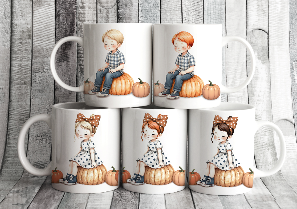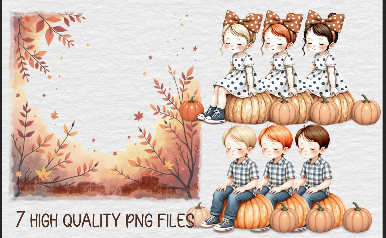 Autumn/Fall girl & boy with separate background file, DTF, UVDTF etc. Sublimation, Print, DTF etc. Personalise, customise
