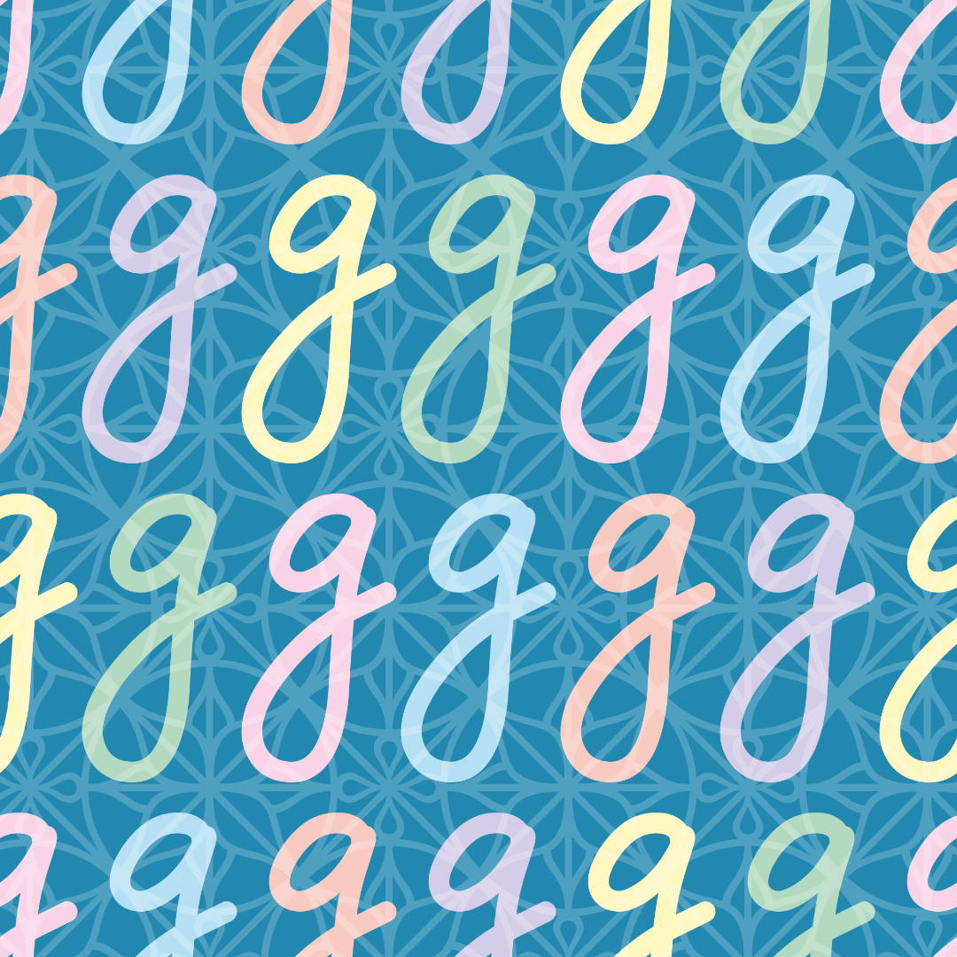 Script letter G tileable seamless pattern. Hand written lower case type vector illustration background.