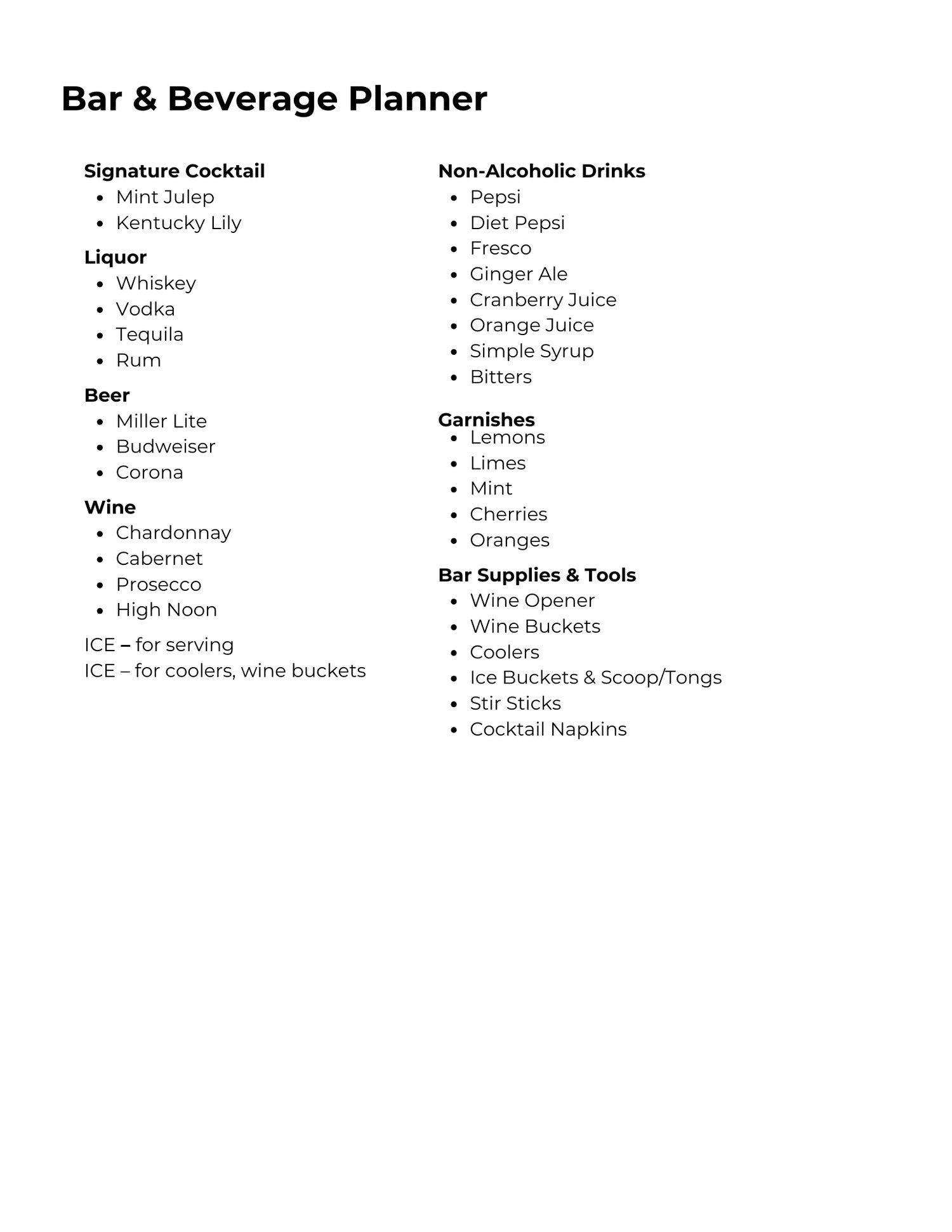 • Beverage Planner