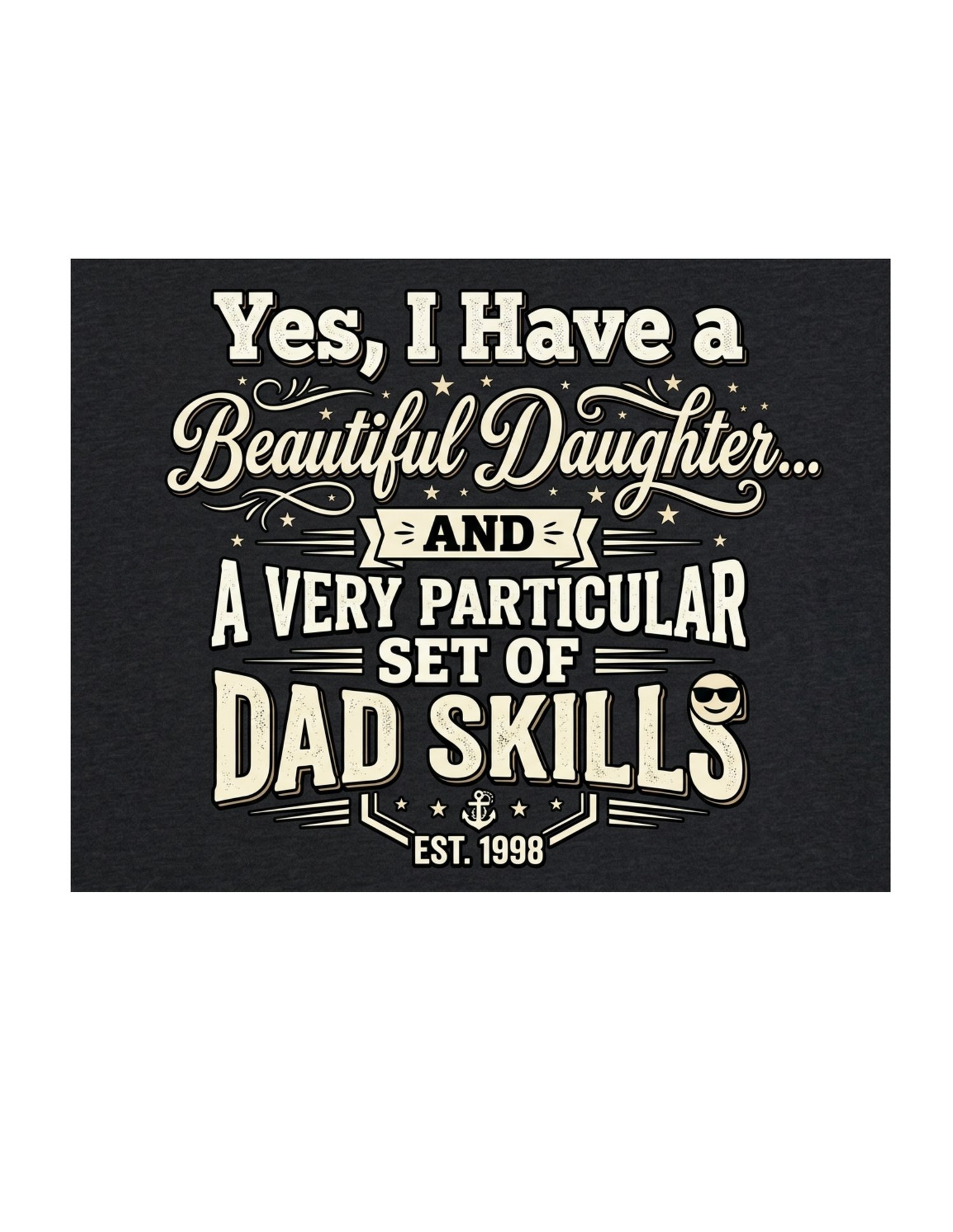 Celebrate the proud dad in your life with this funny and heartwarming Father's Day PNG! Featuring the phrase “Yes, I have a beautiful daughter and a very particular set of skills”, this high-quality transparent digital image is perfect for creating shirts, mugs, bags, and more.