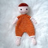 This snuggler works up quickly and easily with blanket yarn or super bulky chenille velvet yarn. There is no sewing needed, as it is worked from top down in one piece. Even the lacy edging and arms are crocheted directly onto the doll.