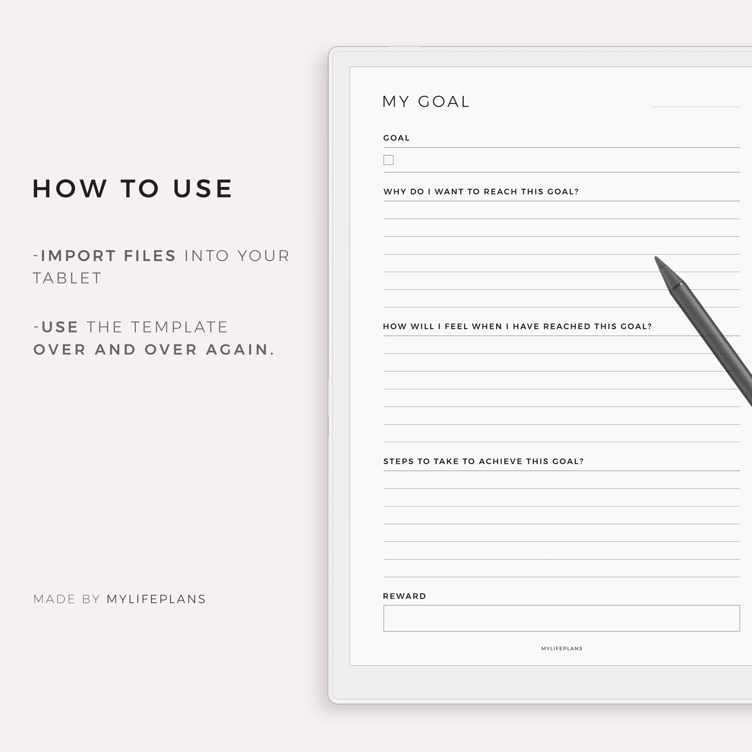 My Goal Planner for Remarkable, Supernote, Kindle Scribe, Boox, Kobo