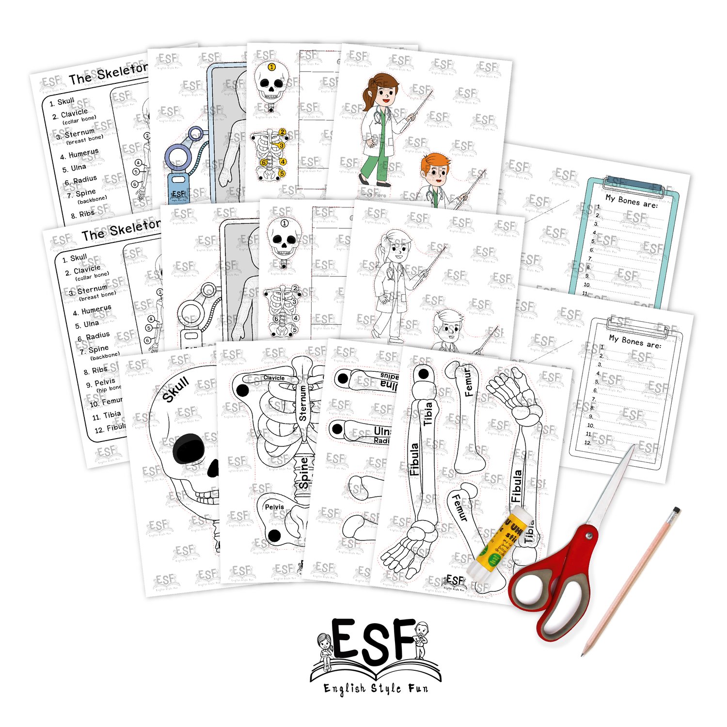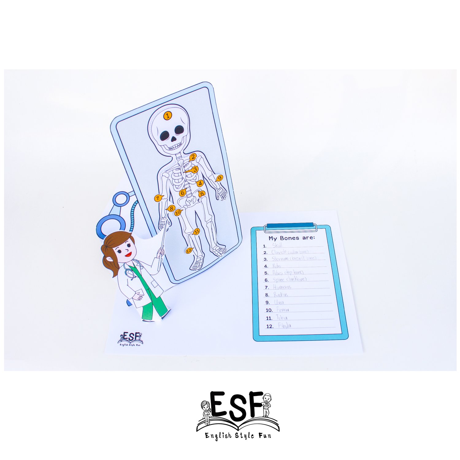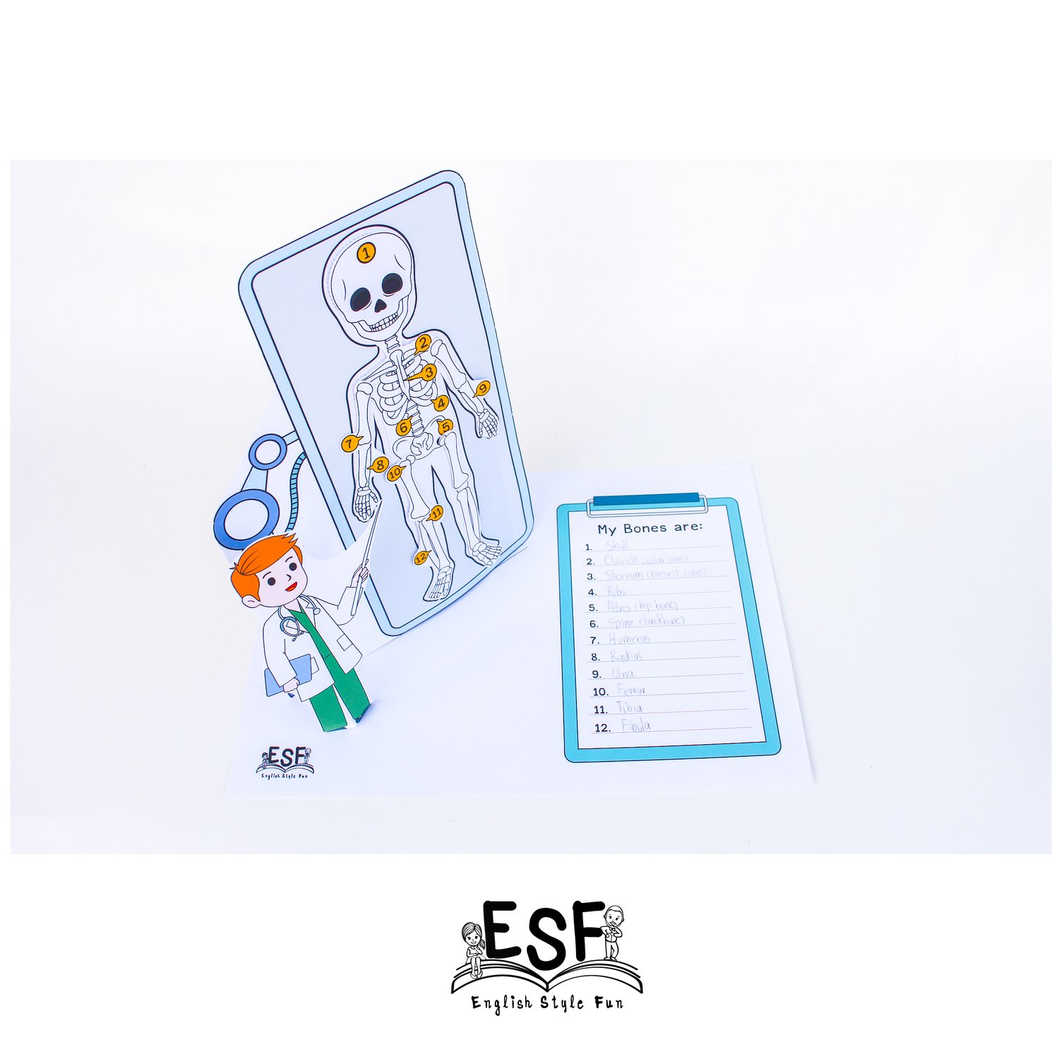 The fun part! Kids can cut and glue all the major bones on the provided templates to build their own skeleton structure. Along with naming each bone appropriately.
