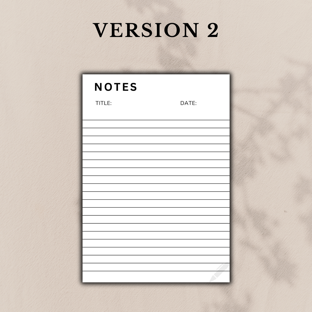 Printable Notes Page | 2 Versions | Instant Download PDF
