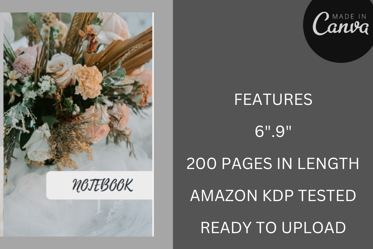 FLOWER KDP LINED PAPER INTERIOR+COVER, LOW CONTENT BOOK FOR KDP READY UPLOAD, FLOWER KDP JOURNAL PAPER, FLOWER JOURNAL NOTEBOOK MOCKUPS, KDP CANVA NOTE